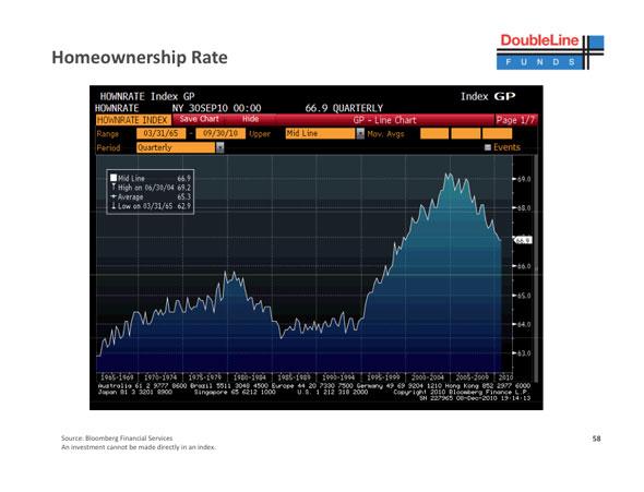 The highest ownership rate of all time was 69.2% around 2005-2006, the low going back to 1965 is 62.9%, and we are currently at 66.9%. The bottom line: It looks like we have a ways to go on the down side!